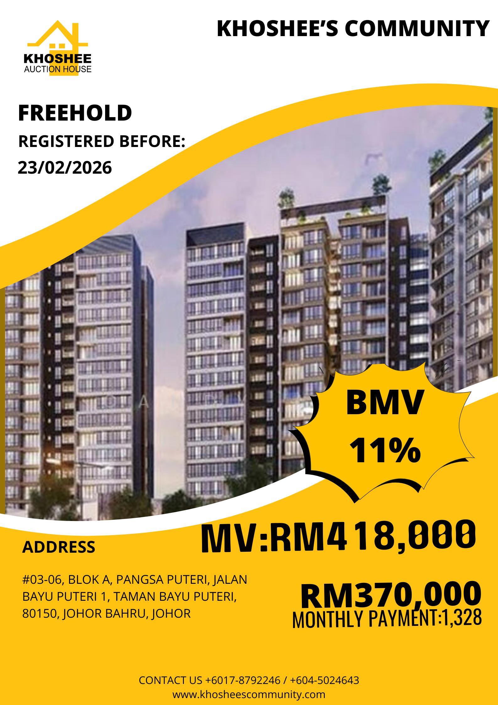 #03-06, BLOK A, PANGSA PUTERI, JALAN BAYU PUTERI 1, TAMAN BAYU PUTERI, 80150, JOHOR BAHRU, Johor