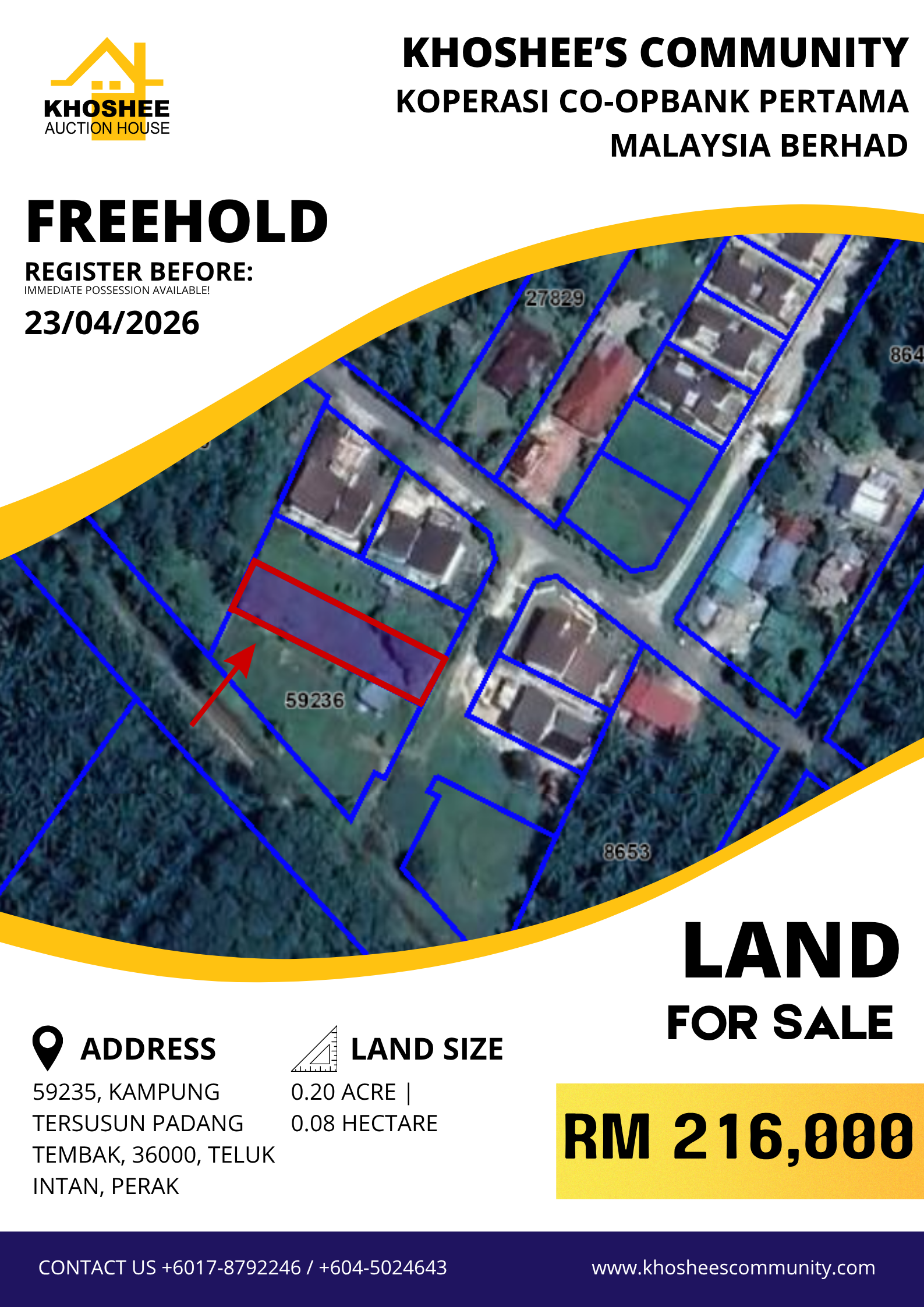 59235, KAMPUNG TERSUSUN PADANG TEMBAK, 36000, TELUK INTAN, Perak
