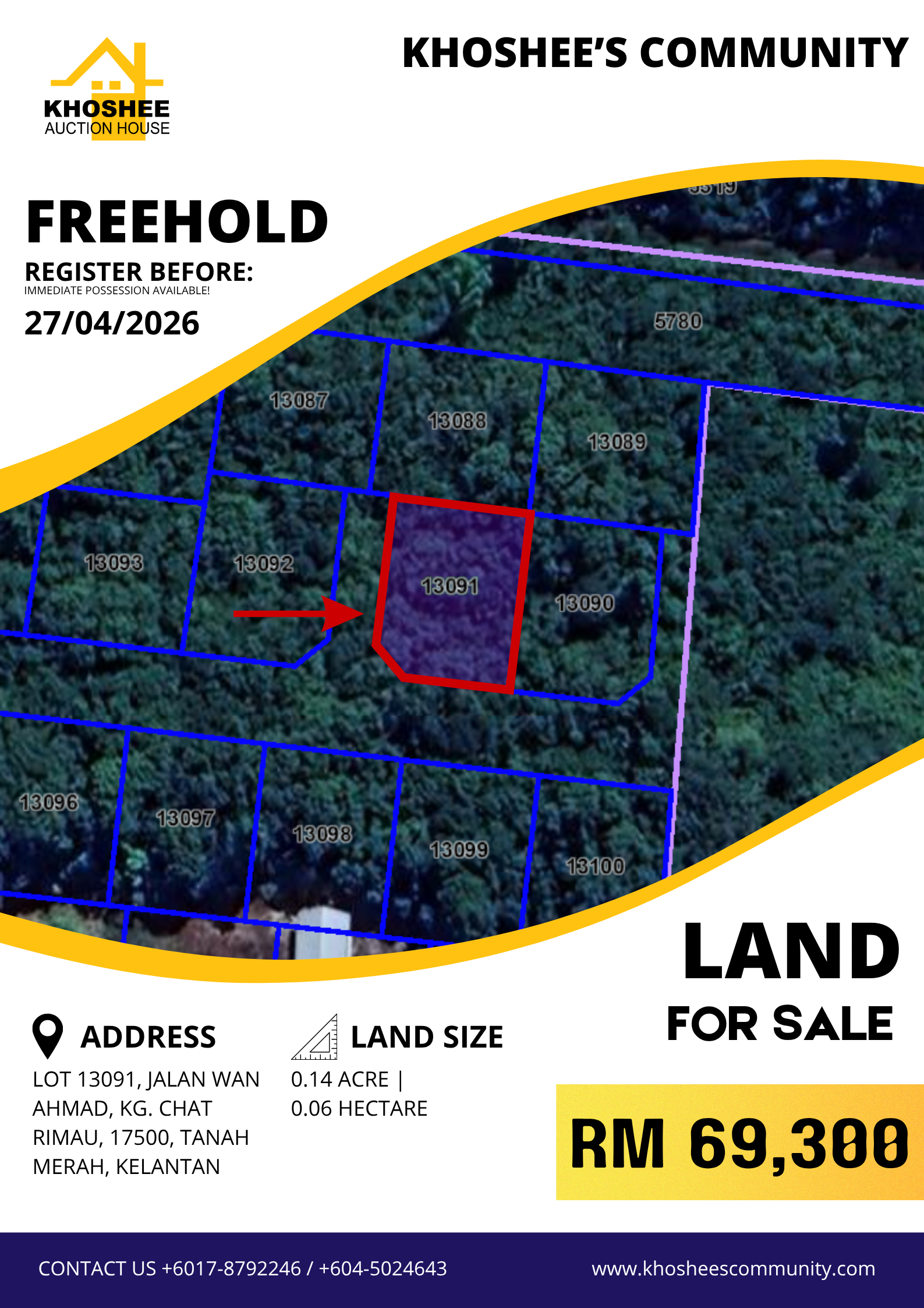 Lot Number:LOT 13093 Parcel Number:N/A Storey Number:N/A Building Number:N/A State:Kelanta ...