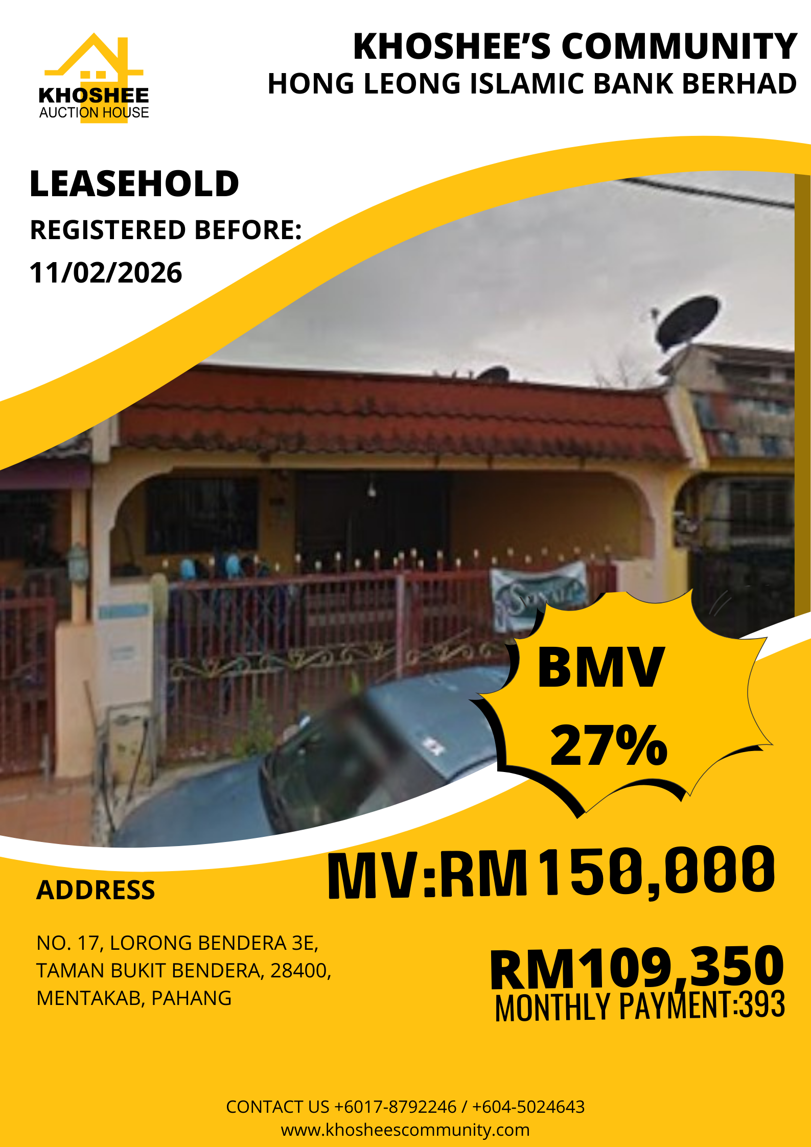 No. 17, Lorong Bendera 3E, Taman Bukit Bendera, 28400, Mentakab, Pahang