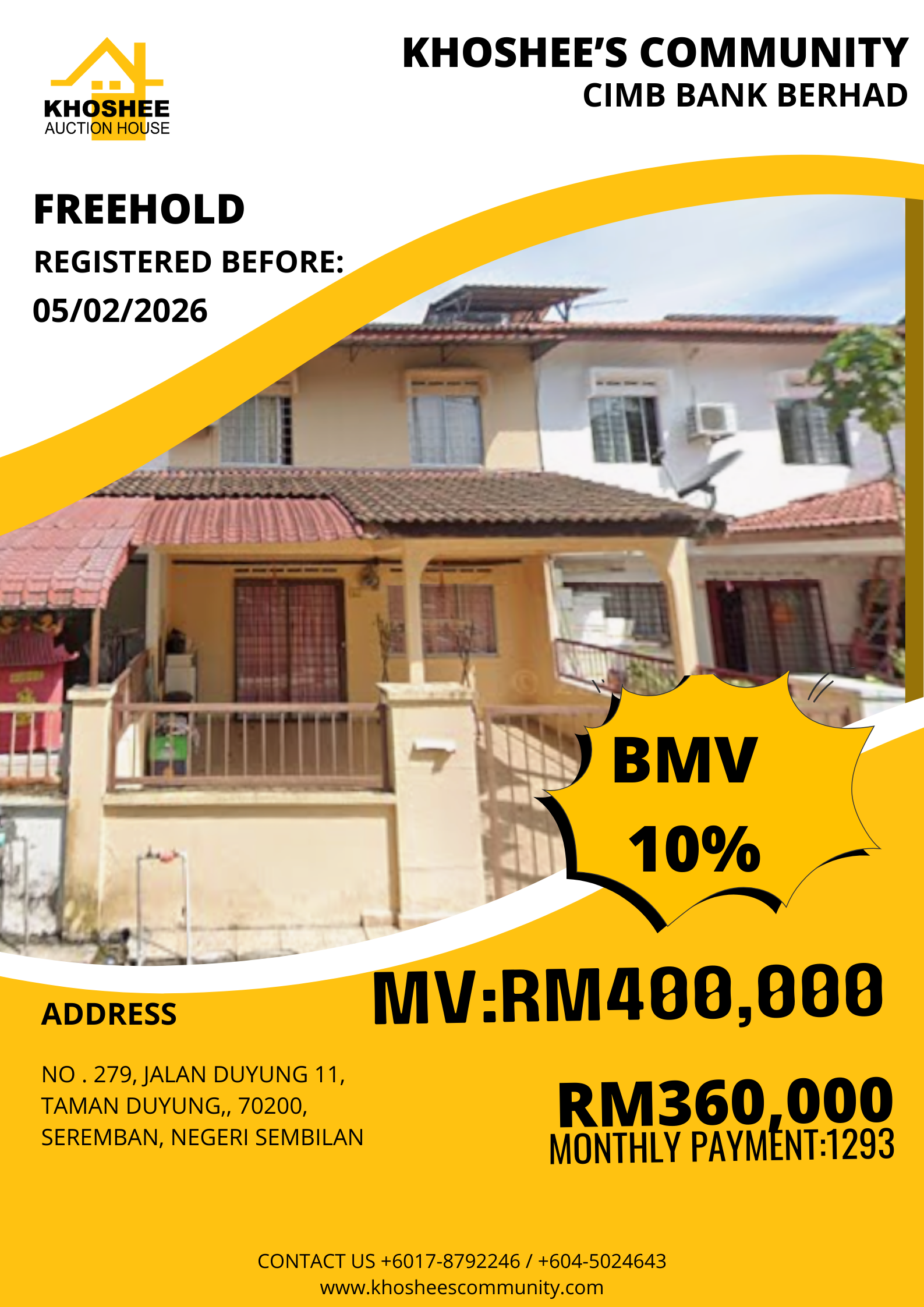 NO . 279, JALAN DUYUNG 11, TAMAN DUYUNG,, 70200, SEREMBAN, Negeri Sembilan