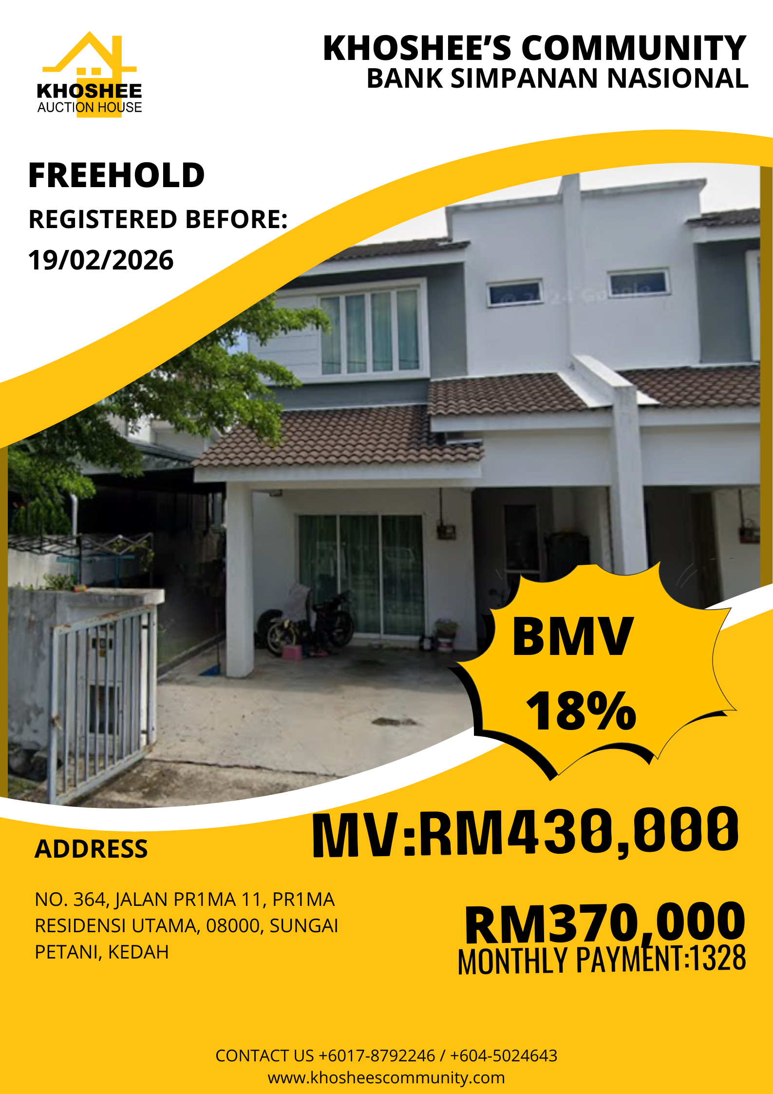 Lot Number:LOT 15370 Parcel Number:N/A Storey Number:N/A Building Number:N/A State:Kedah M ...