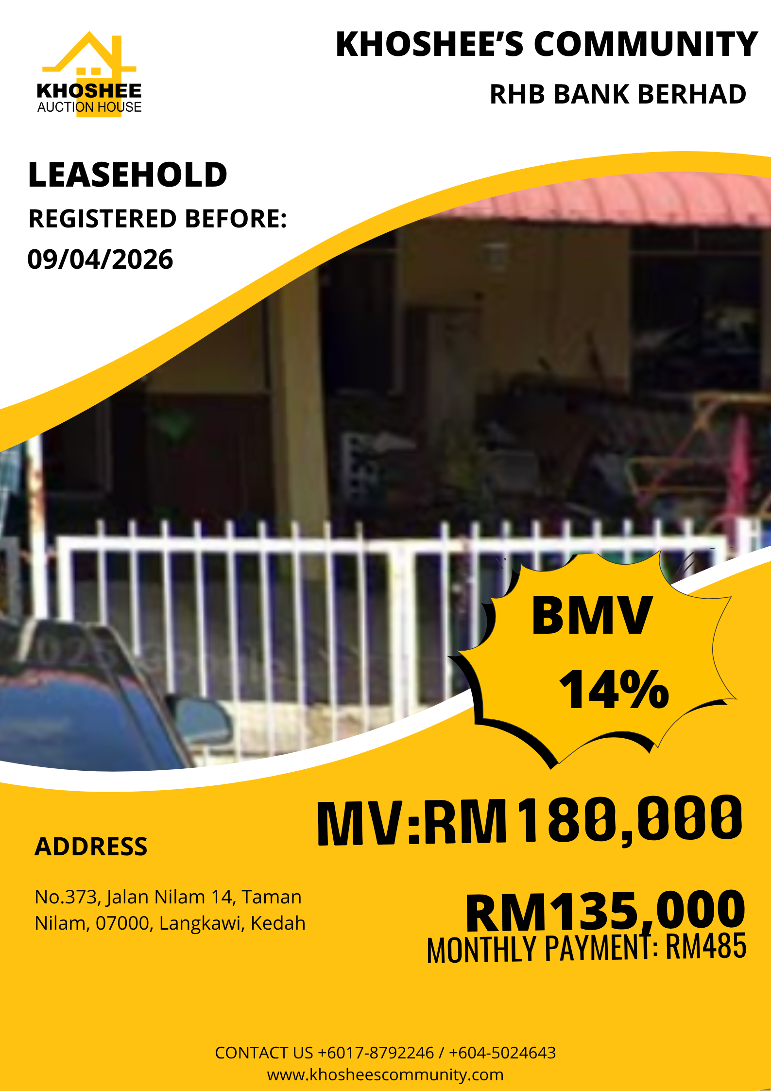 No.373, Jalan Nilam 14, Taman Nilam, 07000, Langkawi, Kedah